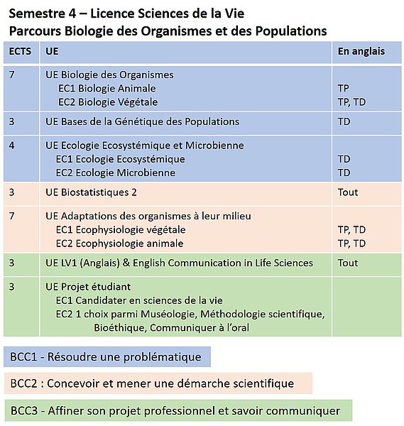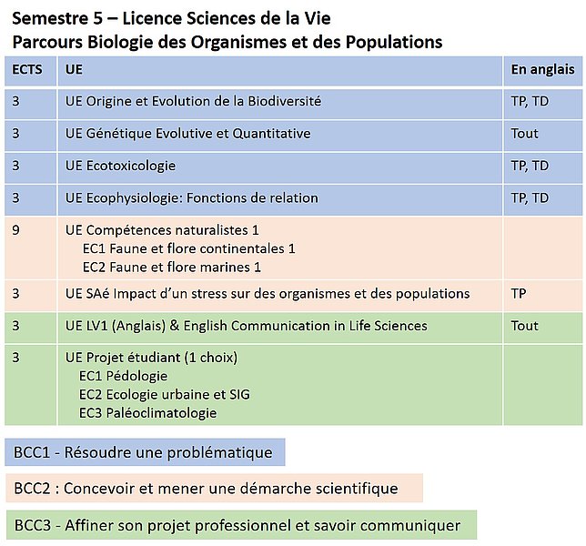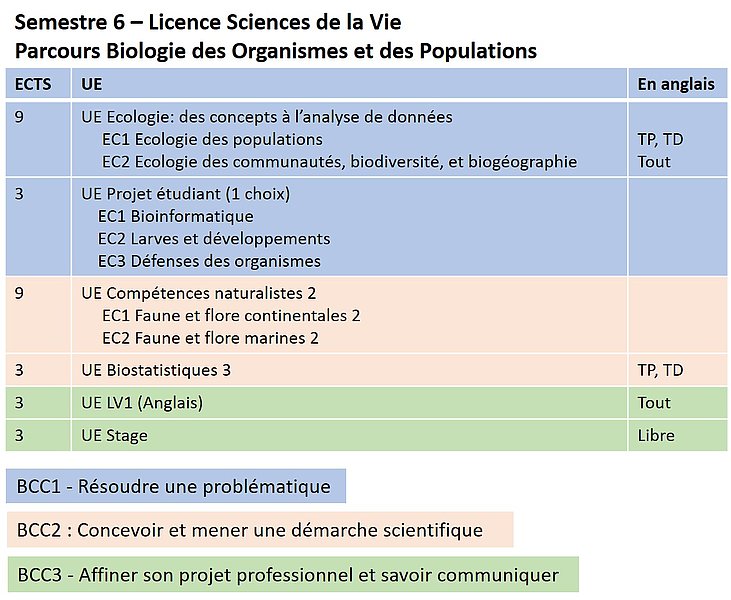 Parcours Biologie des Organismes et des Populations